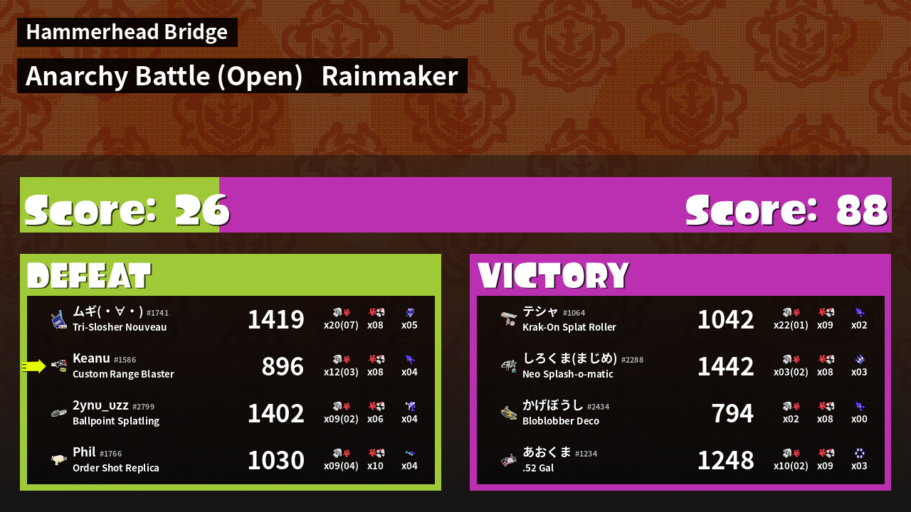 | Mode | Rainmaker - Anarchy Battle (Open) | ||