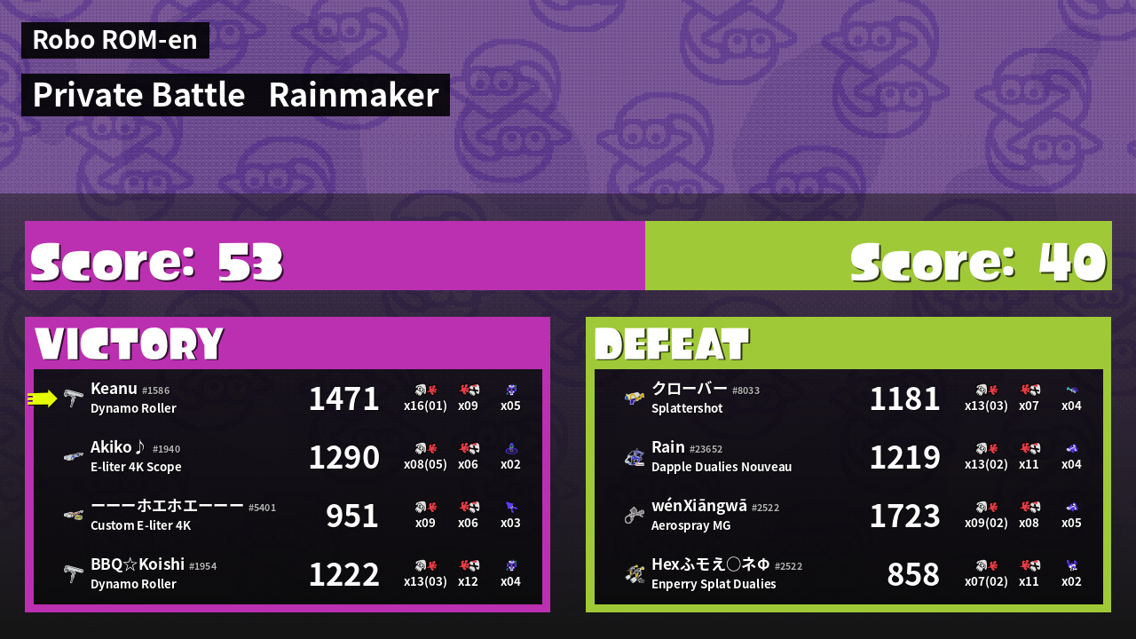 | Medals | #1 Overall Splatter #1 Turf Inker #1 Enemy Splatter | ||