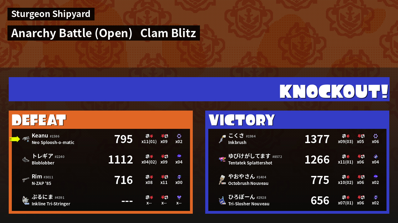 | Mode | Clam Blitz - Anarchy Battle (Open) | ||