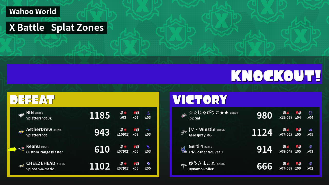 | Mode | Splat Zones - X Battle | ||
