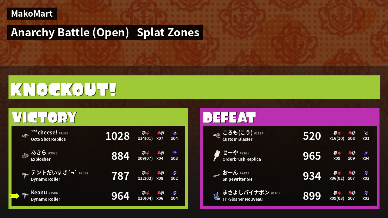 | Mode | Splat Zones - Anarchy Battle (Open) | ||