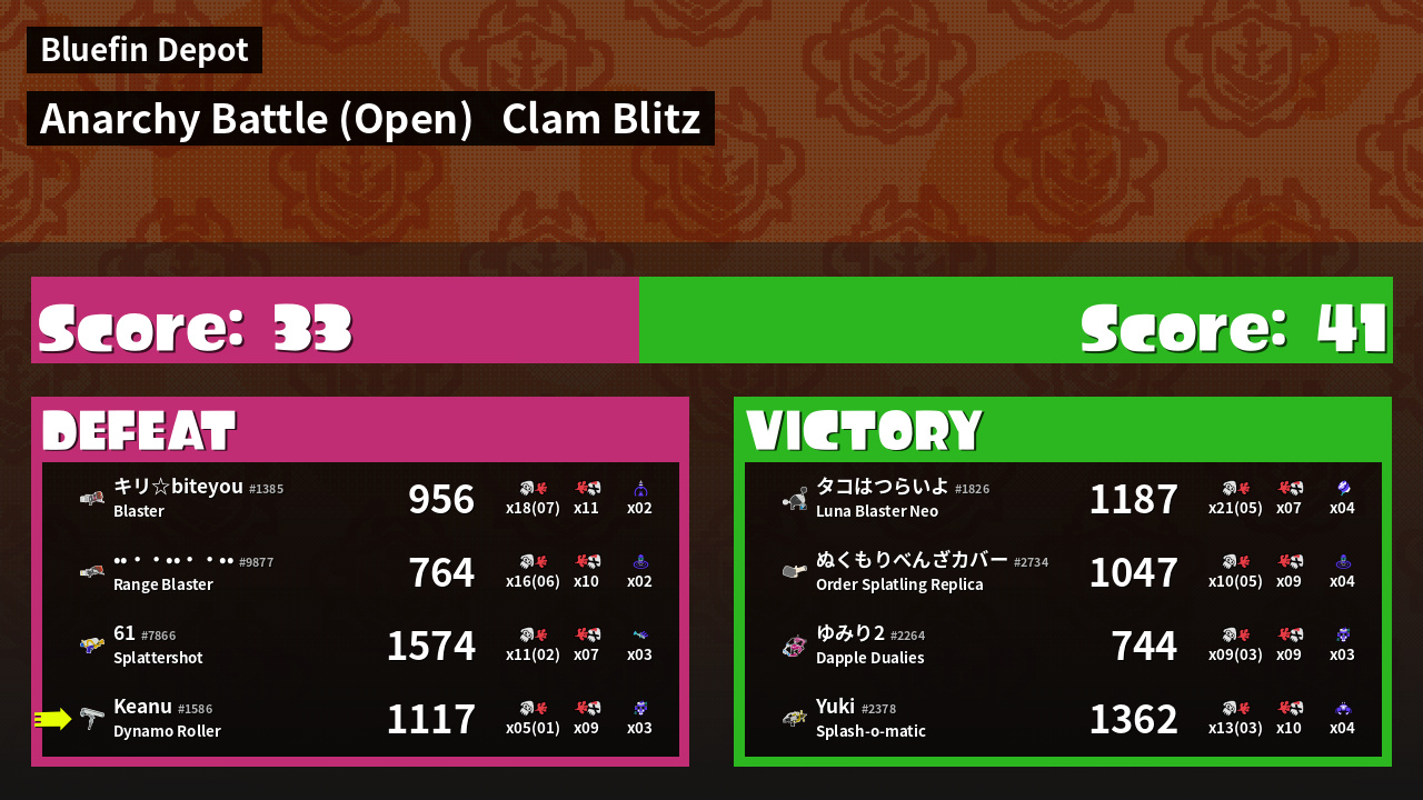 | Mode | Clam Blitz - Anarchy Battle (Open) | ||