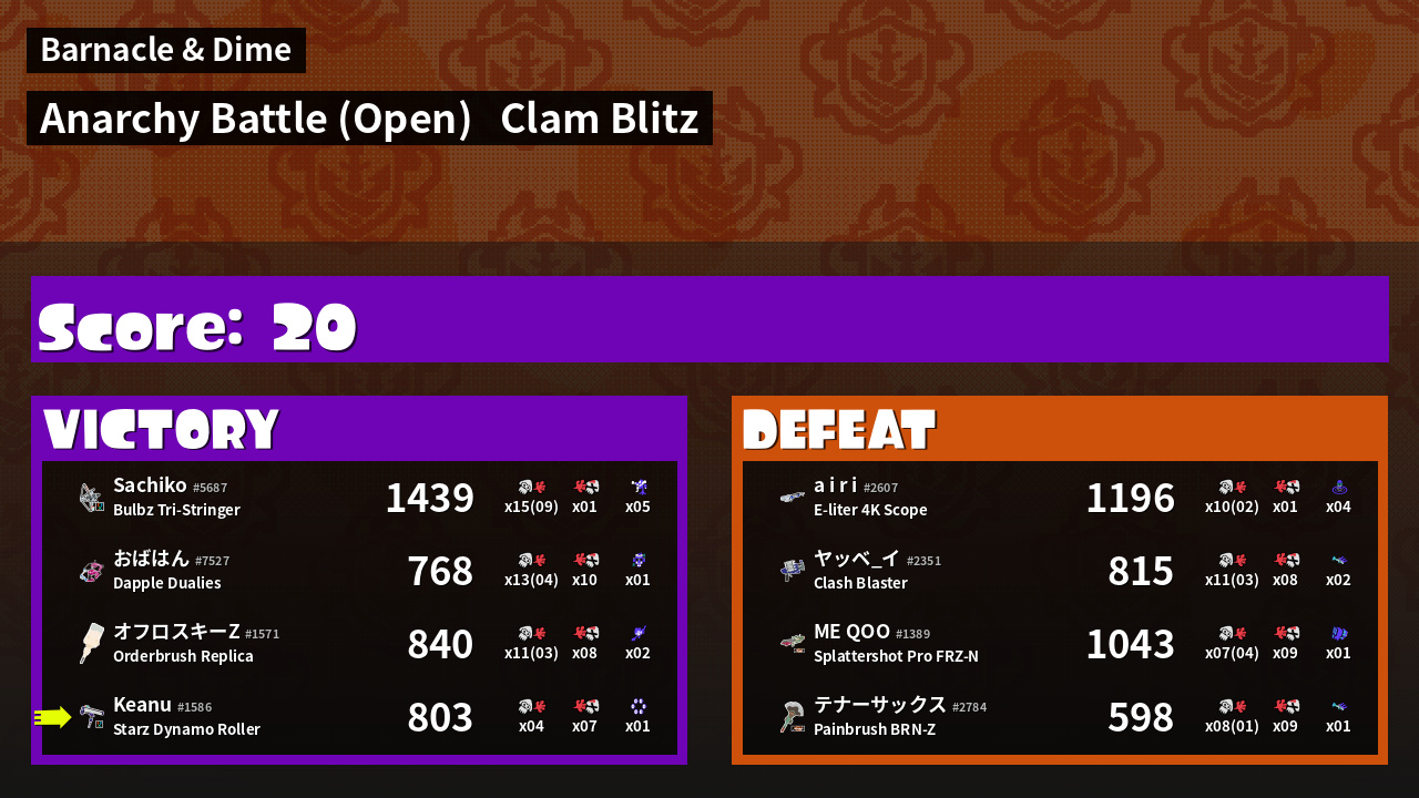 | Mode | Clam Blitz - Anarchy Battle (Open) | ||