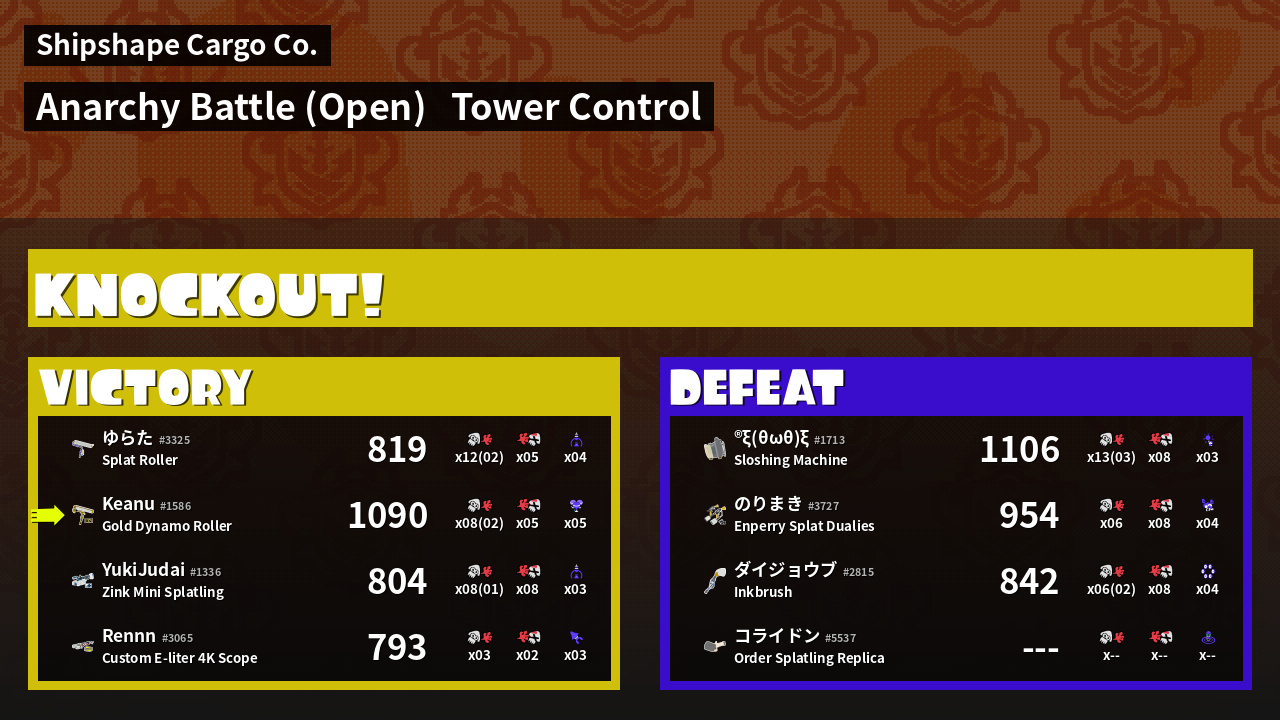 | Mode | Tower Control - Anarchy Battle (Open) | ||