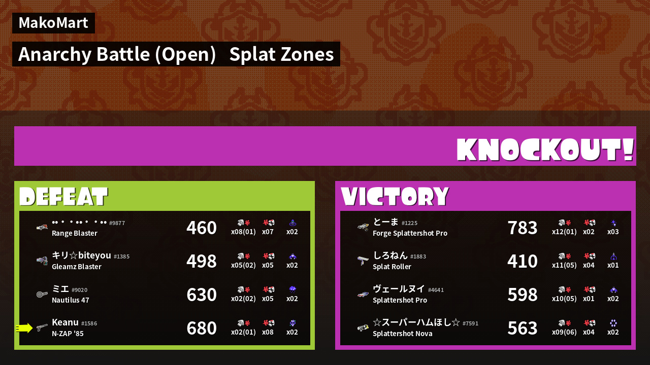| Mode | Splat Zones - Anarchy Battle (Open) | ||