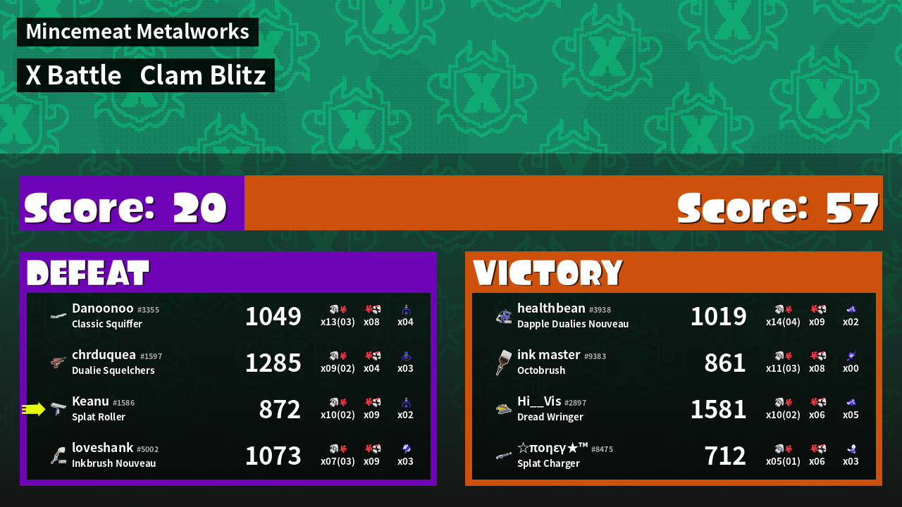 | Mode | Clam Blitz - X Battle | ||