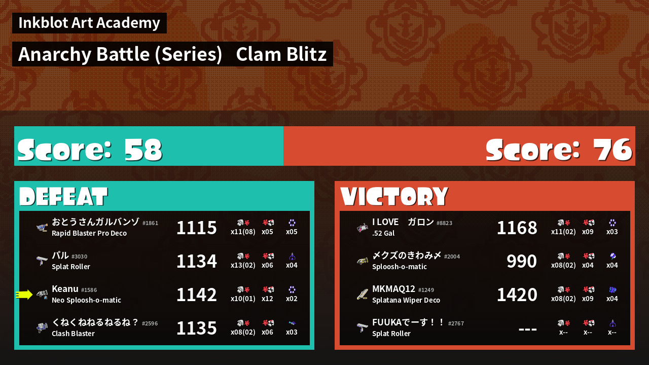 | Mode | Clam Blitz - Anarchy Battle (Series) | ||