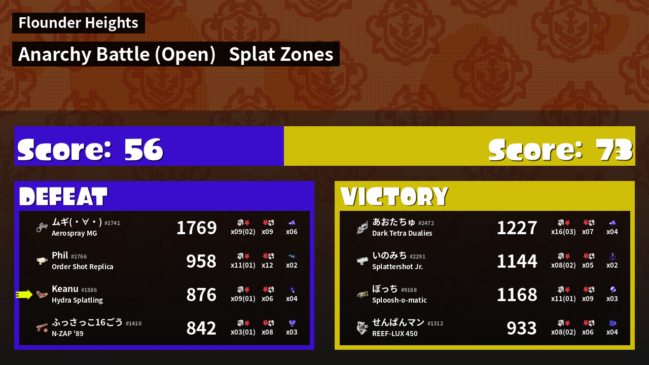 | Mode | Splat Zones - Anarchy Battle (Open) | ||