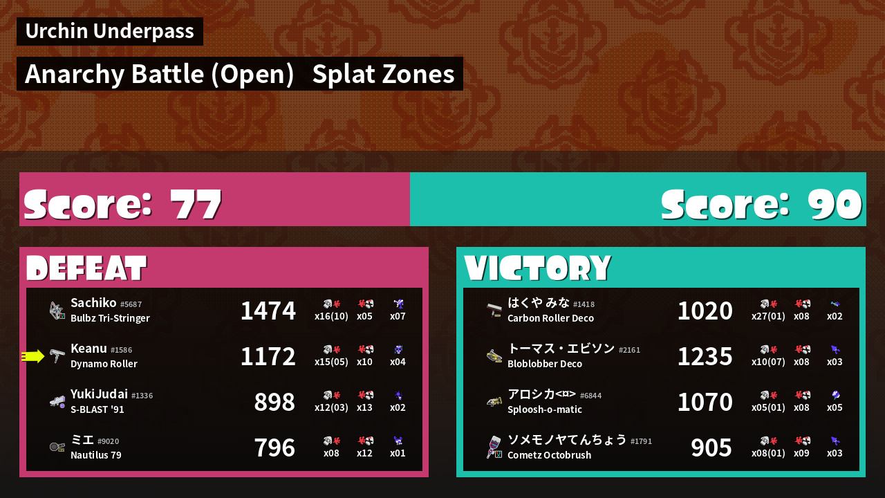 | Mode | Splat Zones - Anarchy Battle (Open) | ||