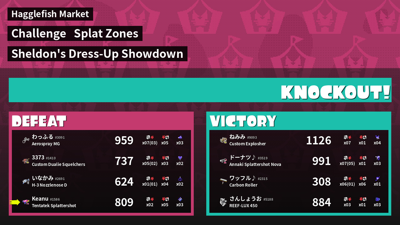 | Medals | #1 Damage Taker #1 Ink Consumer #1 Triple Inkstrike User | ||