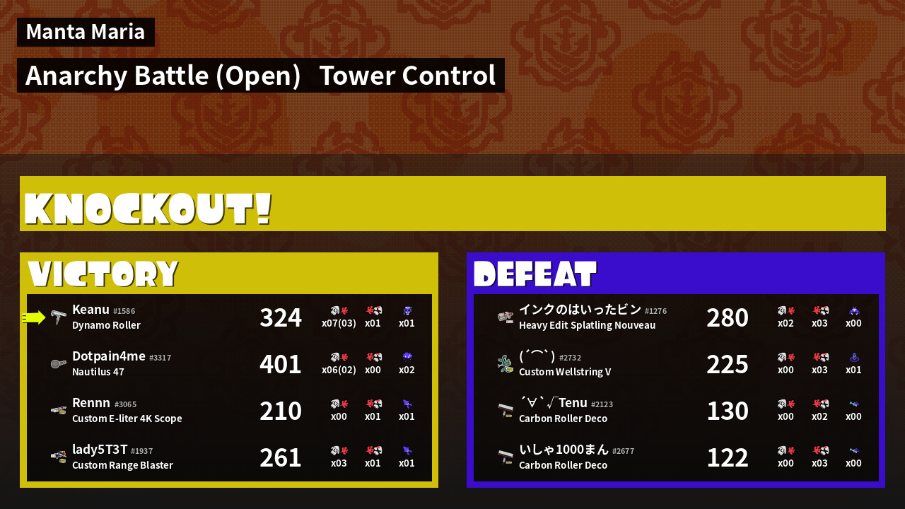 | Mode | Tower Control - Anarchy Battle (Open) | ||