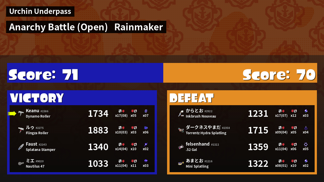 | Mode | Rainmaker - Anarchy Battle (Open) | ||