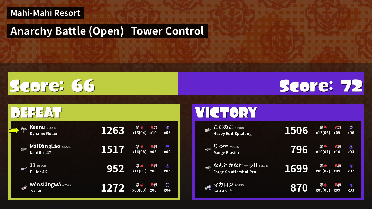 | Mode | Tower Control - Anarchy Battle (Open) | ||