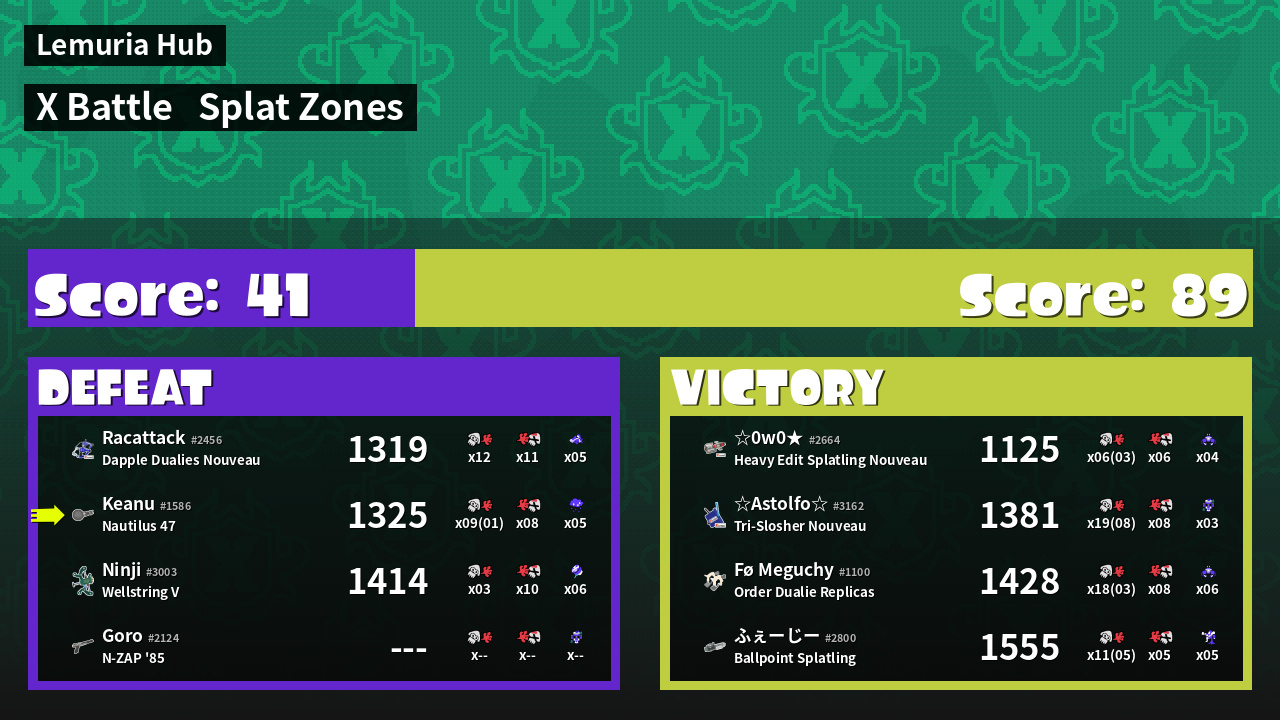 | Mode | Splat Zones - X Battle | ||