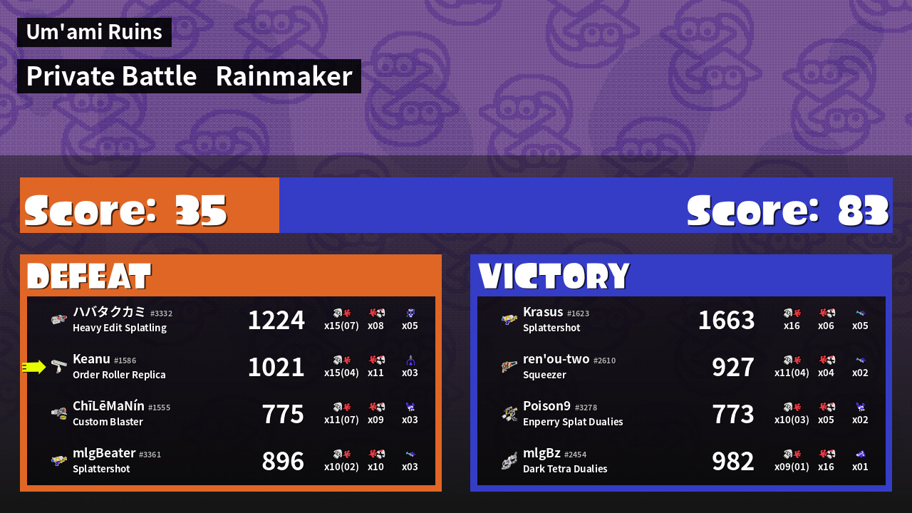 | Medals | #1 Overall Splatter Record-Score Setter #1 Enemy Splatter | ||