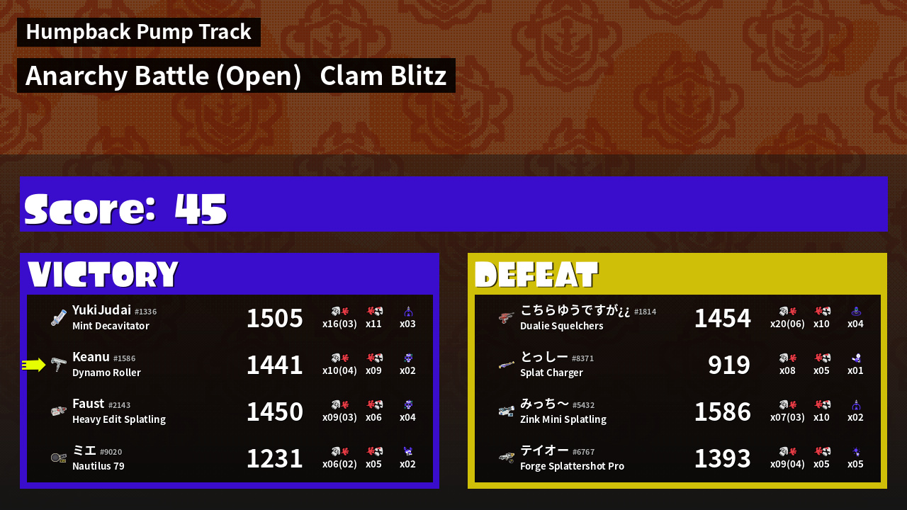 | Medals | #1 Popular Target #1 Splat Assister #1 Damage Taker | ||