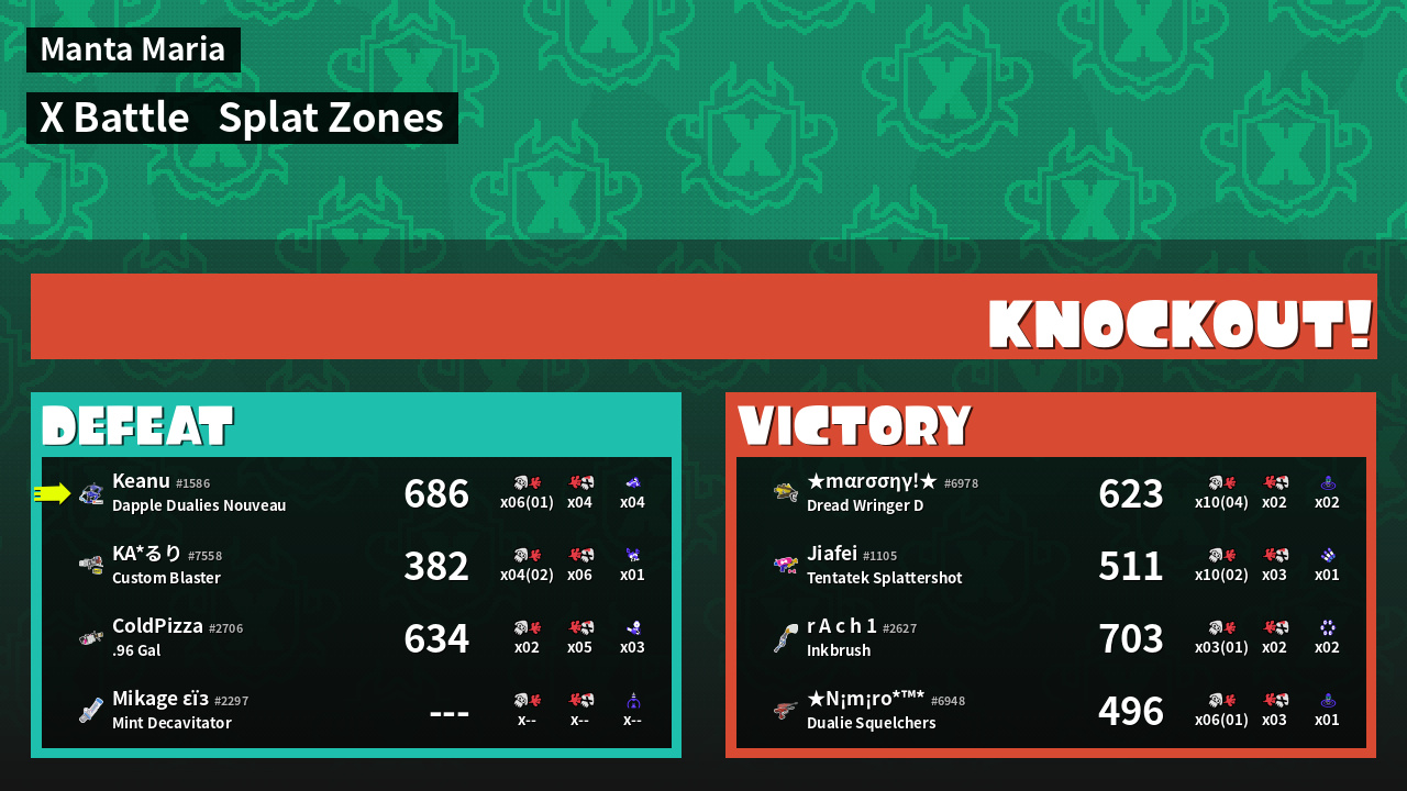 | Mode | Splat Zones - X Battle | ||