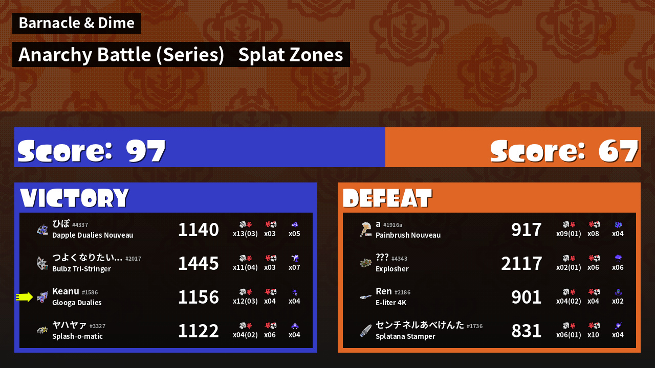 | Mode | Splat Zones - Anarchy Battle (Series) | ||