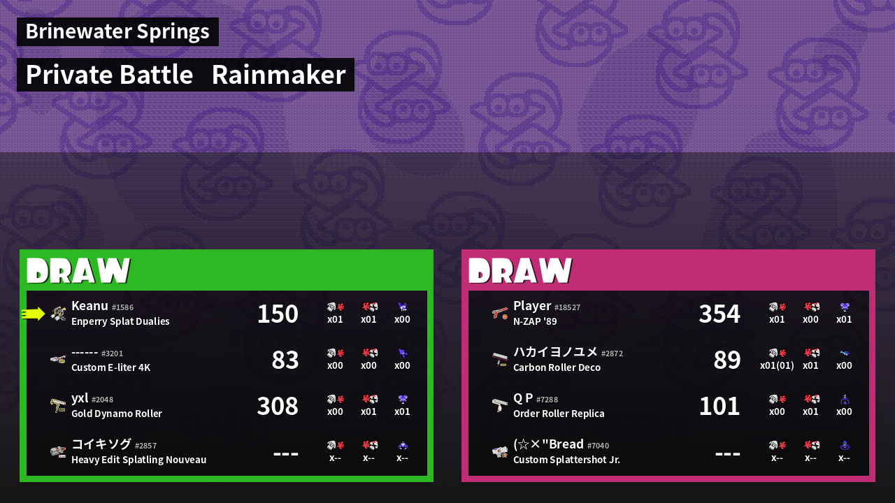 | Weapon | Enperry Splat Dualies ( Curling Bomb / Triple Splashdown) | ||