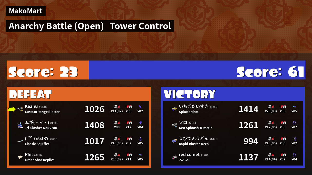 | Mode | Tower Control - Anarchy Battle (Open) | ||