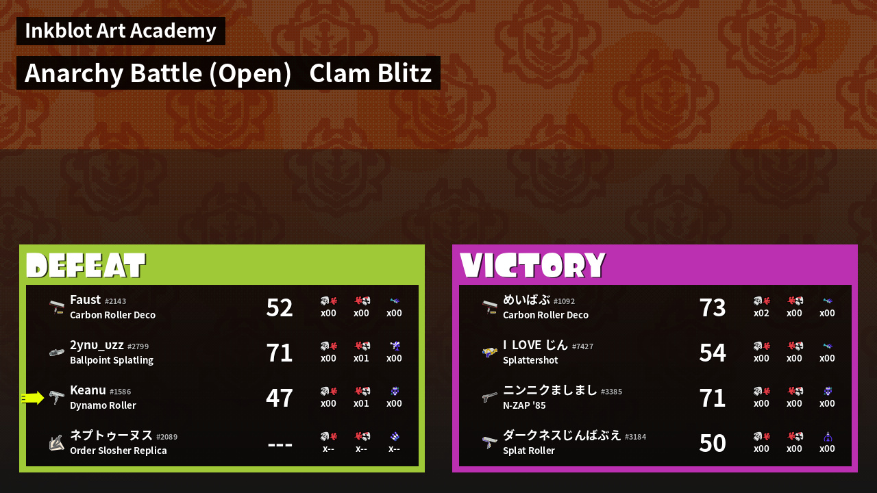 | Mode | Clam Blitz - Anarchy Battle (Open) | ||