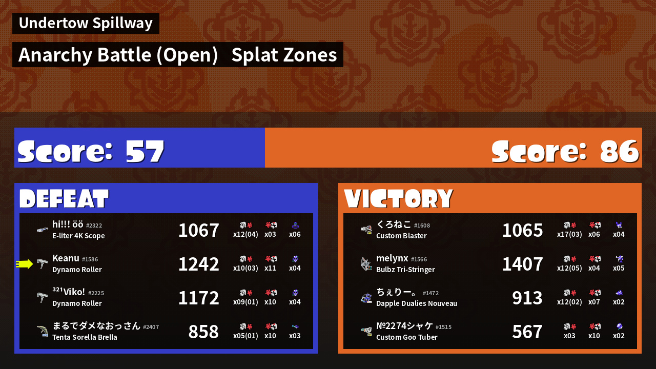 | Mode | Splat Zones - Anarchy Battle (Open) | ||