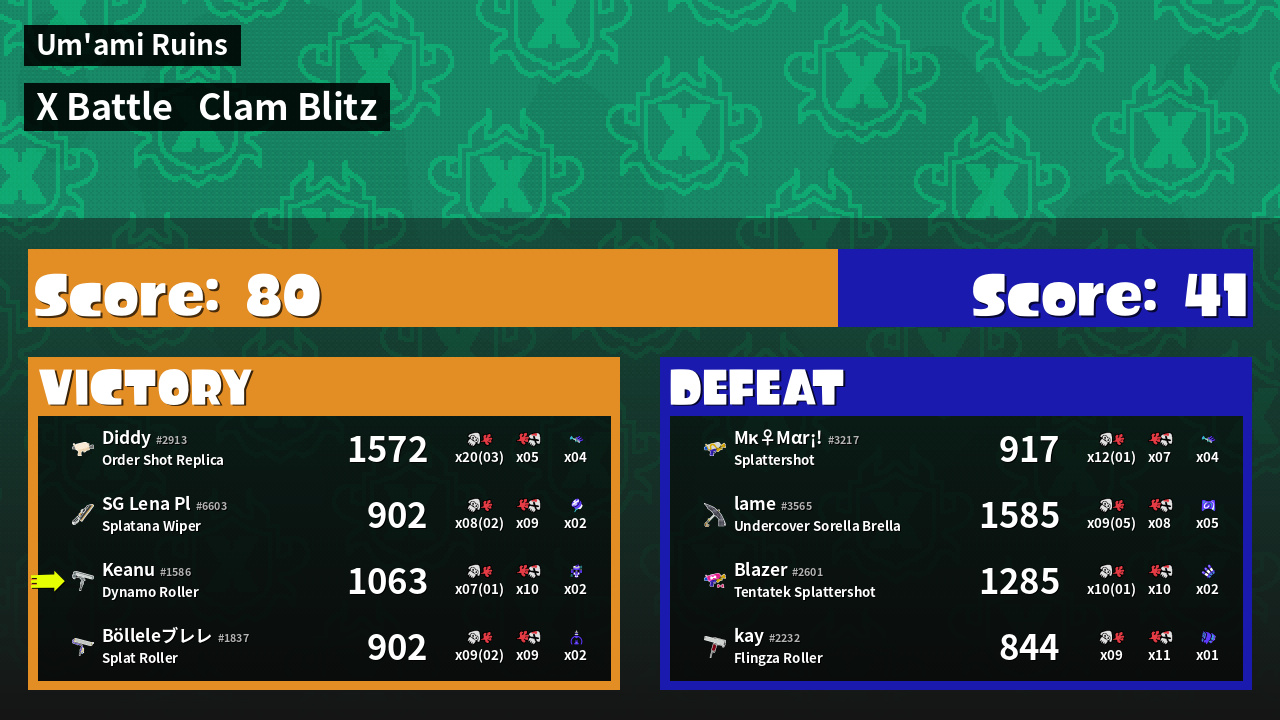 | Mode | Clam Blitz - X Battle | ||