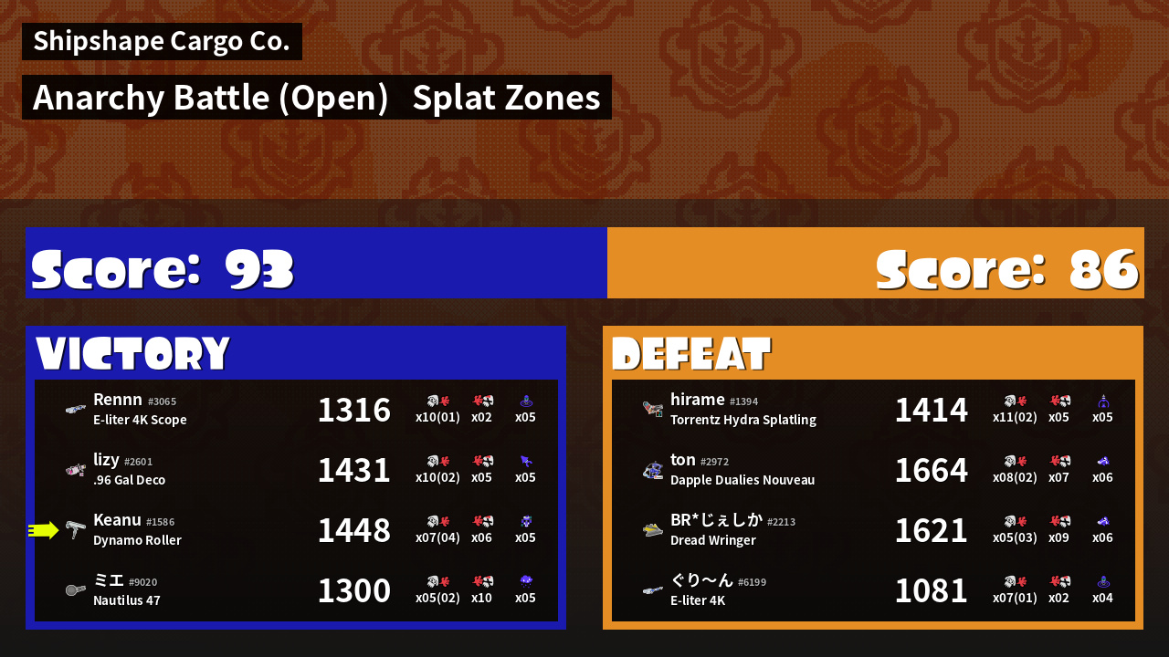 | Mode | Splat Zones - Anarchy Battle (Open) | ||