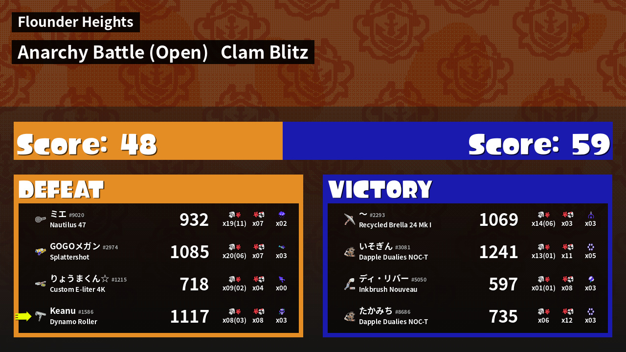 | Mode | Clam Blitz - Anarchy Battle (Open) | ||