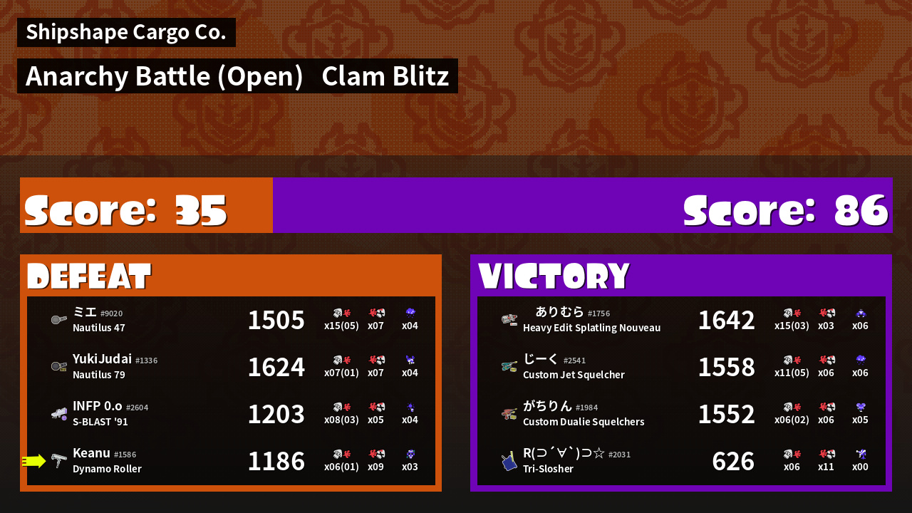 | Mode | Clam Blitz - Anarchy Battle (Open) | ||