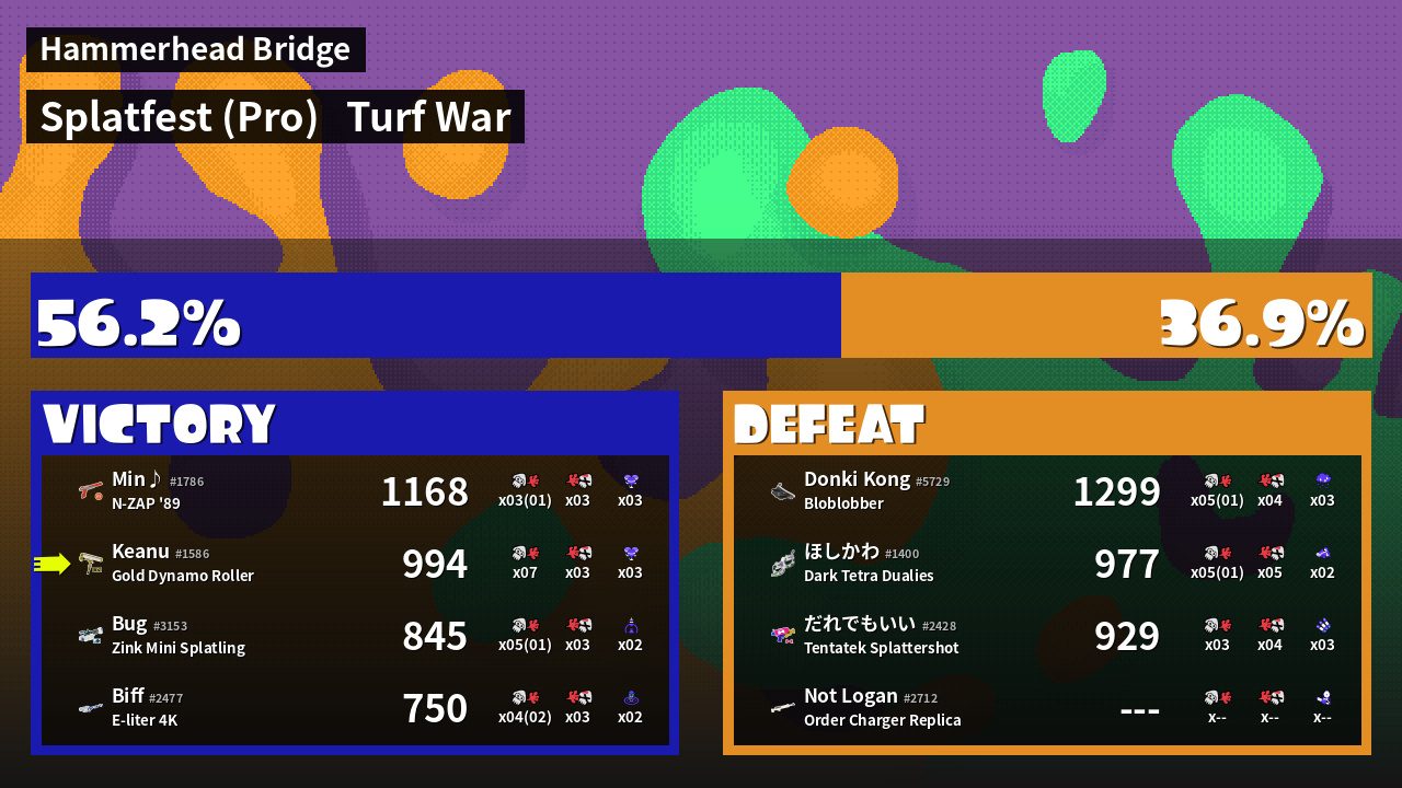 | Medals | #1 Overall Splatter #1 Enemy-Base Inker #1 Super Jump Spot | ||