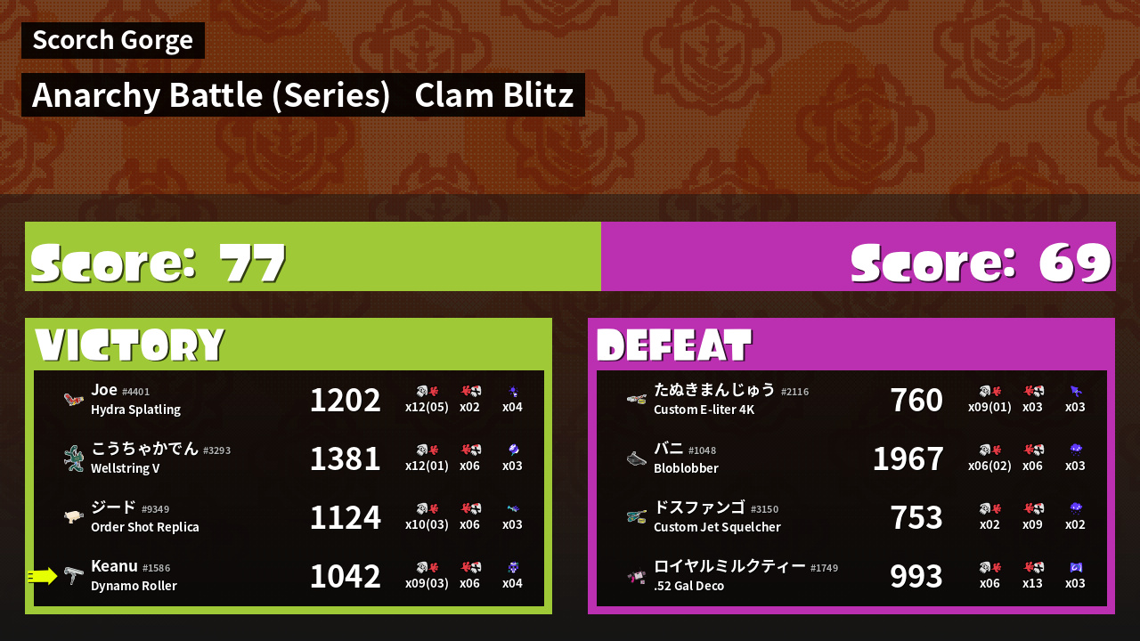 | Medals | #1 Ink Consumer #1 Tacticooler User #2 Splat Assister | ||