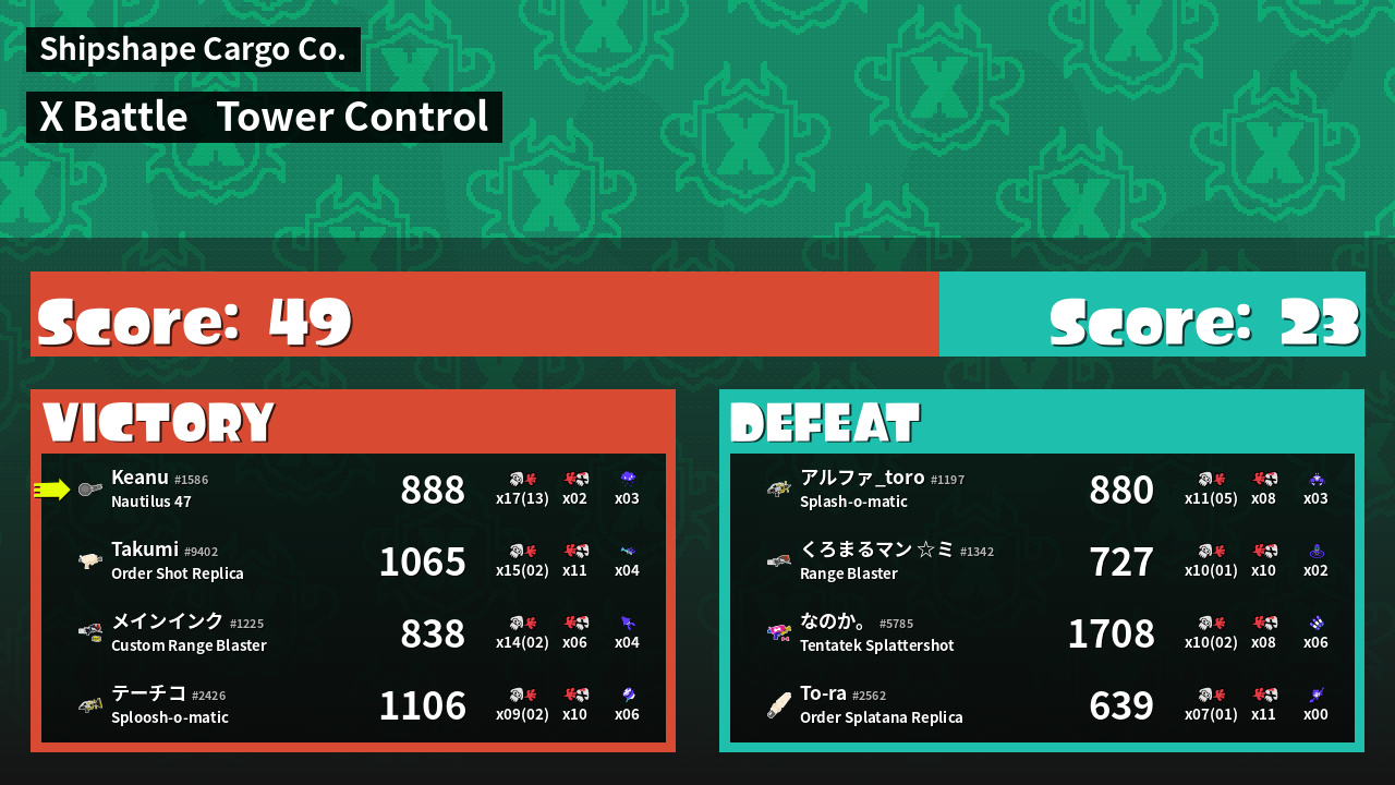 | Mode | Tower Control - X Battle | ||