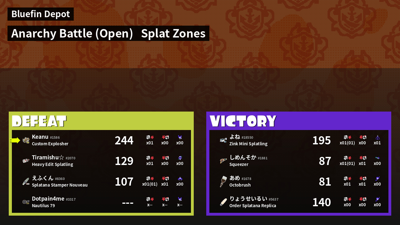 | Mode | Splat Zones - Anarchy Battle (Open) | ||