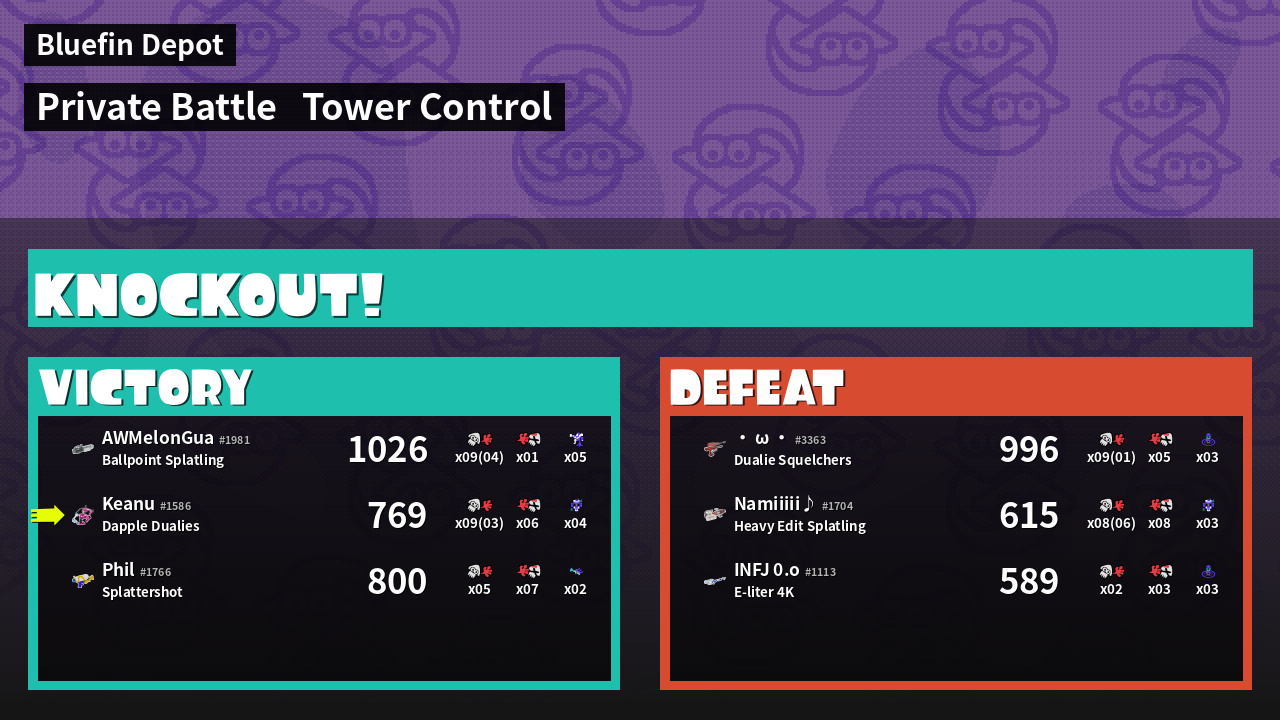 | Kills / Deaths | 6 + 3 / 6 = Kill Ratio: 1.00 | ||