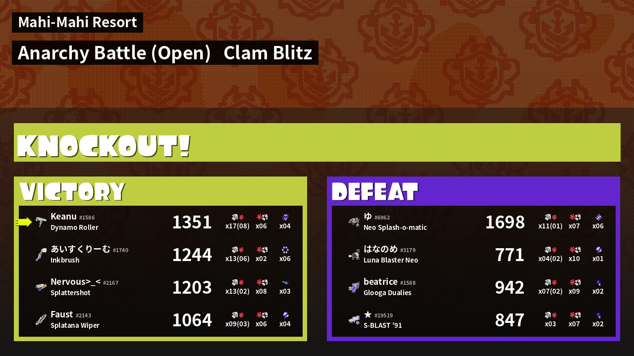 | Mode | Clam Blitz - Anarchy Battle (Open) | ||
