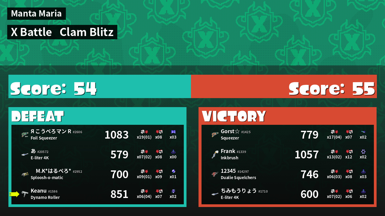 | Medals | #1 Splat Assister #1 Damage Taker #1 Tacticooler User | ||