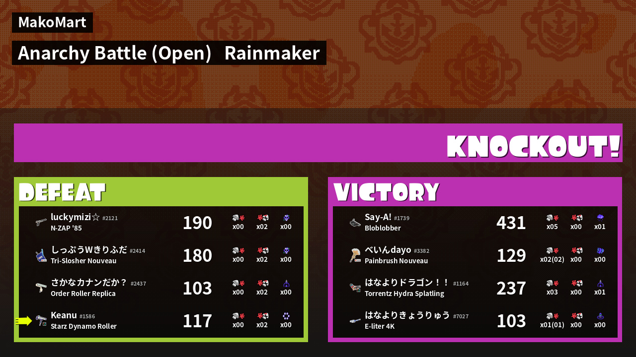 | Mode | Rainmaker - Anarchy Battle (Open) | ||