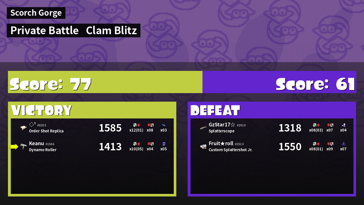 | Medals | #1 Clam Carrier #1 Super Jump Spot #1 Splat Assister | ||