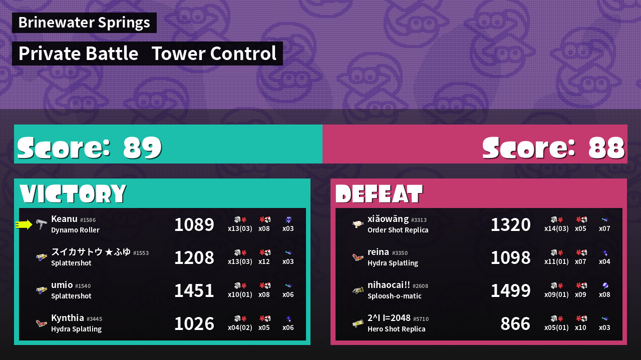 | Medals | #1 Overall Splatter #1 Score Booster Record-Score Setter | ||