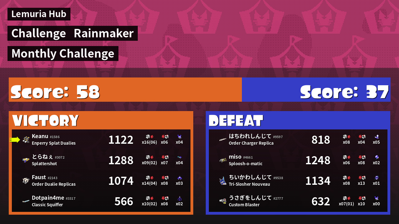 | Medals | #1 Overall Splatter #1 Super Jump Spot #1 Enemy Splatter | ||