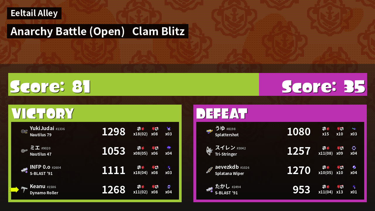 | Mode | Clam Blitz - Anarchy Battle (Open) | ||