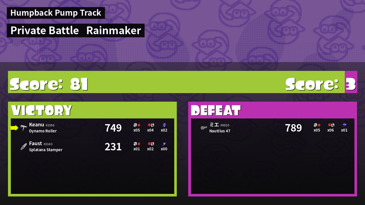 | Medals | #1 Overall Splatter #1 Score Booster Record-Score Setter | ||