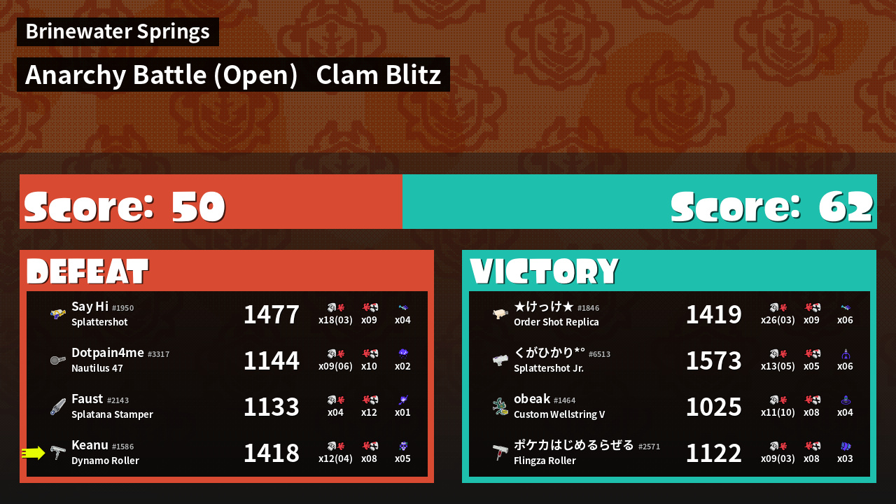 | Mode | Clam Blitz - Anarchy Battle (Open) | ||