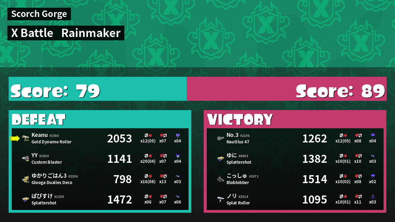 | Weapon | Gold Dynamo Roller ( Splat Bomb / Super Chump) | ||