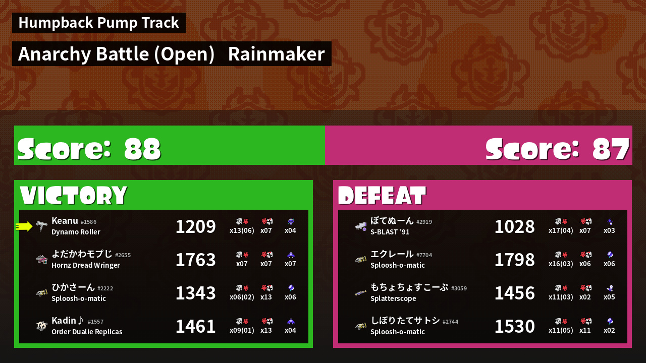 | Mode | Rainmaker - Anarchy Battle (Open) | ||