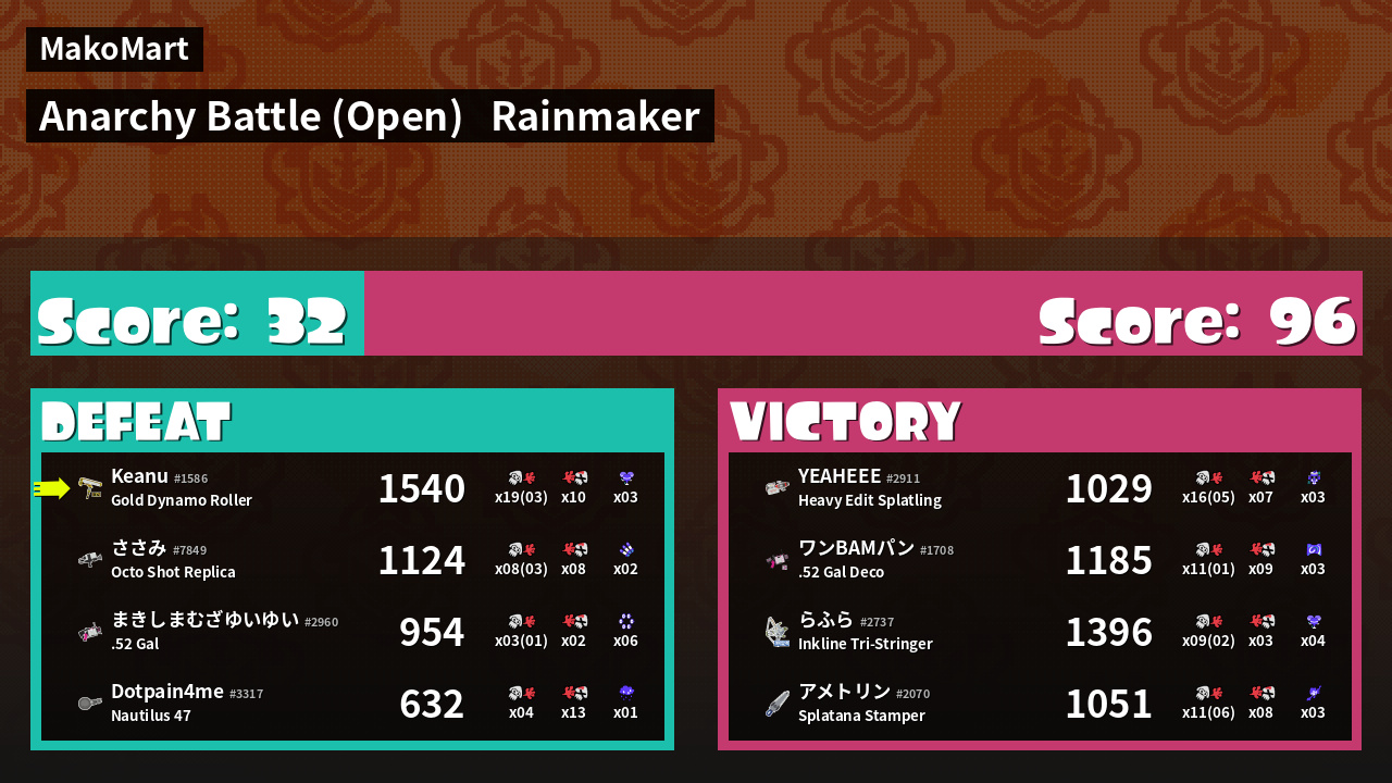 | Mode | Rainmaker - Anarchy Battle (Open) | ||