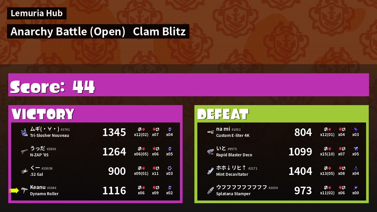 | Mode | Clam Blitz - Anarchy Battle (Open) | ||