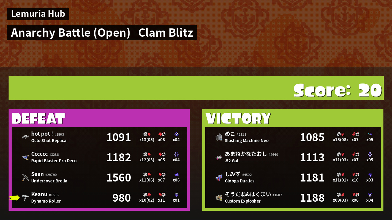 | Mode | Clam Blitz - Anarchy Battle (Open) | ||