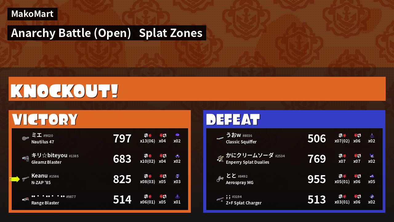 | Mode | Splat Zones - Anarchy Battle (Open) | ||